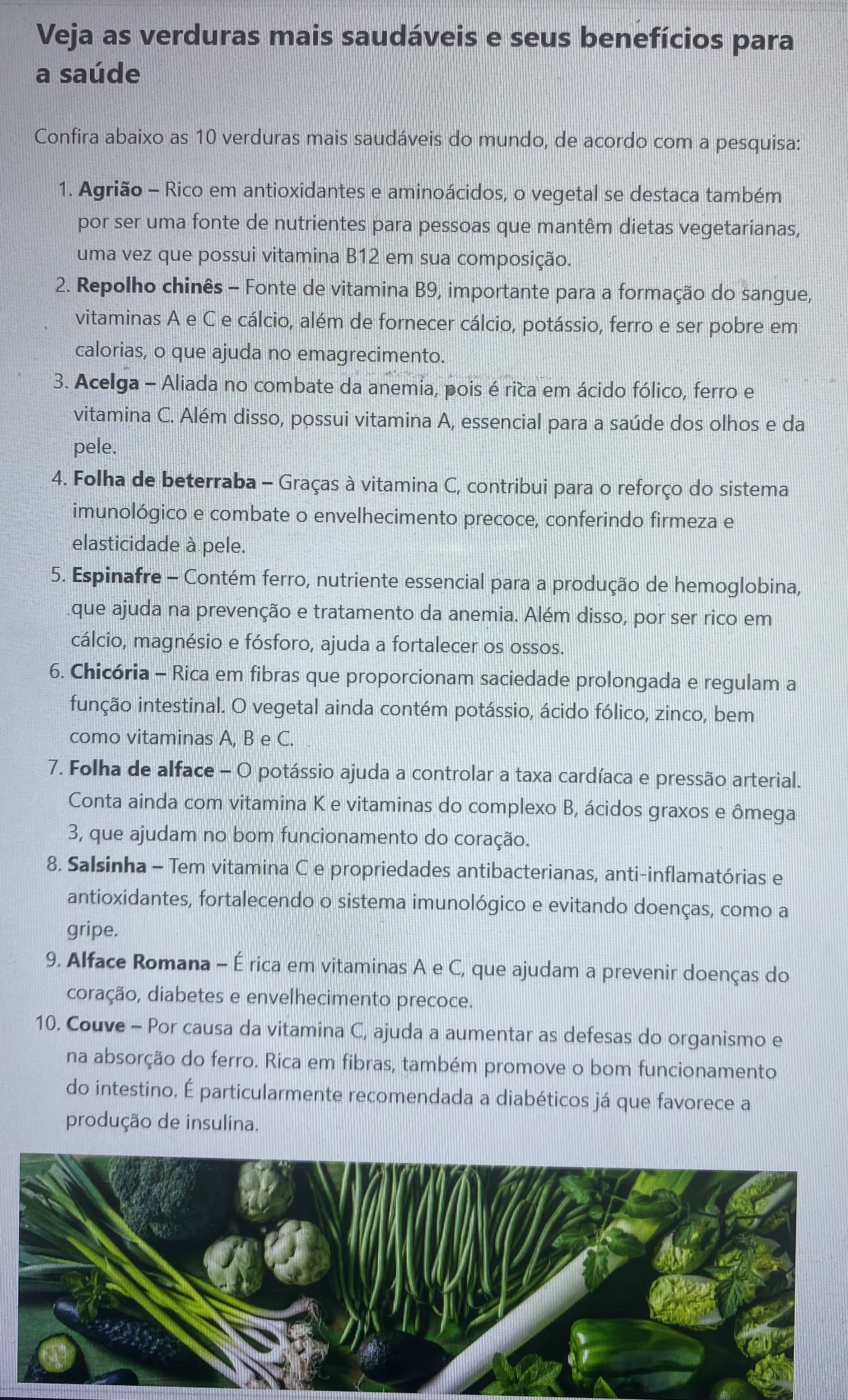 10 Verduras mais saudáveis